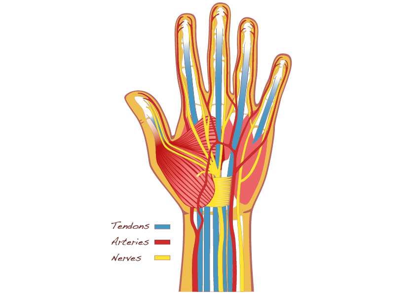 "טריגר פינגר" אצבע הדק או אגודל הדק הם מן התחלואים השכיחים ביותר בכירורגיה של היד ונגרמים עקב נפיחות התעבות והסתיידות של הגיד בבסיס האצבע. הדבר מתבטא בנקישה מכאיבה בזמן כיפוף או יישור האצבע או האגודל. התופעה שכיחה במיוחד בהשכמה ובשעות הראשונות של הבוקר. במידה והאצבע הדק אינו מטופל טריגר פינגר מחמיר בהדרגה והאצבע אינה יכולה להתיישר ולפעמים להתכופף. הנקישה הפתאומית נקראת “triggering” וחוסר היישור או הכיפוף נקרא “נעילה”. בציור הבא ניתן לראות את מבנה כף היד במבט מן הצד הכפי. הגידים, בלבן, עוברים לתוך האצבע בתוך מנהרה שקרויה מעטפת הגיד. תפקידה של המעטפת לייצר נוזל שמטרתו לרכך ולהפחית את החיכוך בין הגיד לסביבתו בזמן תנועת האצבע מיישור לכיפוף. תחילתה של המעטפת קרויה טבעת A1 . שים לב לעורק (באדום) ולעצב (בצהוב) של האצבע. הם קרובים מאד לטבעות. הציור הבא מדגים את מערכת הטבעות בהגדלה: